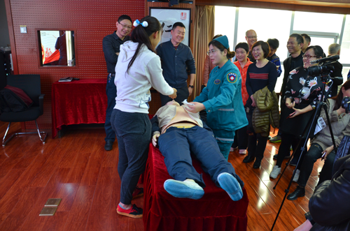 在实践教学环节,两位经验丰富的急诊科医护人员把刚才的理论知识以实践操作方式进行具体呈现,现场手把手地向大家教授心肺复苏、气管异物处理等操作流程,对相关救护操作步骤要领进行了详细示范。面对期待已久的模拟人操作,早已跃跃欲试的职工们争先恐后地上手操练,每一个人练习时,旁边的人纷纷提点指导,互相提醒动作要点,在寓教于乐中增强了培训效果。